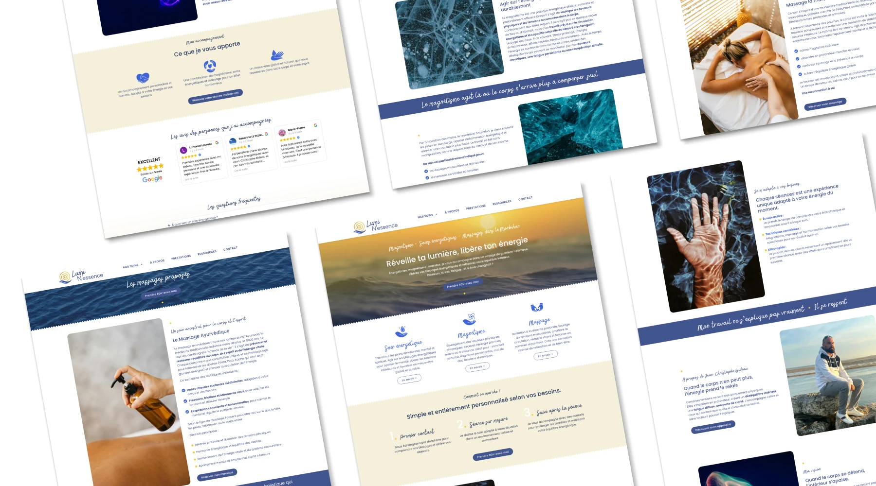 Tout au long du projet, chaque décision a été expliquée, argumentée et validée ensemble. Je n’ai rien imposé. Jean-Christophe a participé aux choix, compris les arbitrages, posé ses questions et validé chaque étape du processus. C’est ma manière de travailler : la co-création. Je ne conçois pas un projet à la place de mon client, je le construis avec lui. Le site LumiN’essence est le pilier central de sa communication, il doit démontrer sa crédibilité, asseoir sa réputation et présenter ses soins. Pour que cela fonctionne, il fallait que chaque élément lui ressemble vraiment.