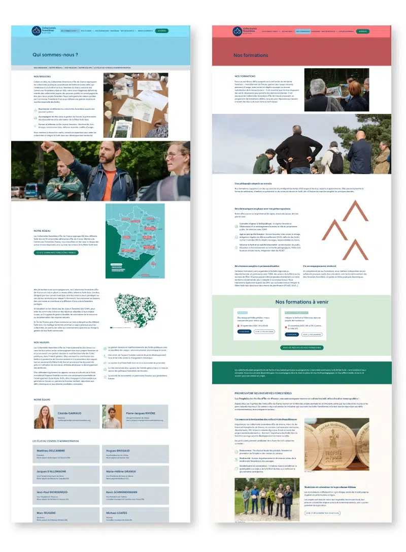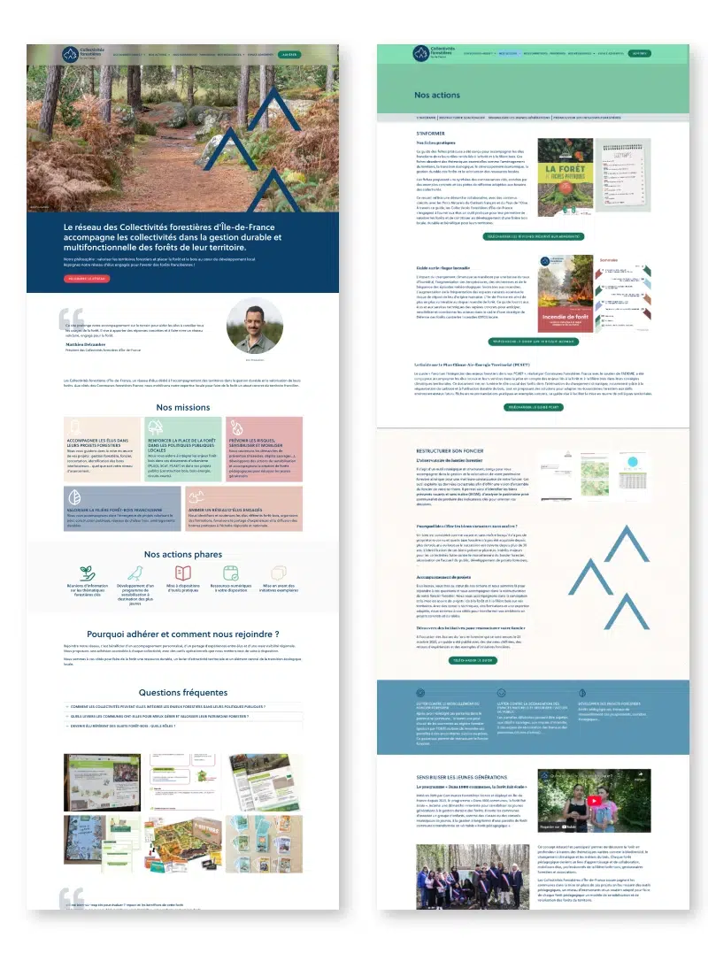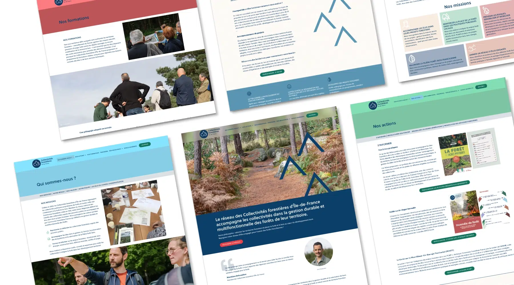 Clotilde et Pierre-Jacques ont fait appel à moi pour créer le site des Collectivités Forestières d’Île-de-France, un réseau d’élus qui accompagne les communes de la région dans la gestion, la préservation et la valorisation de leurs forêts. Leur mission : placer la forêt et le bois au cœur du développement local tout en conciliant tous les usages forestiers.