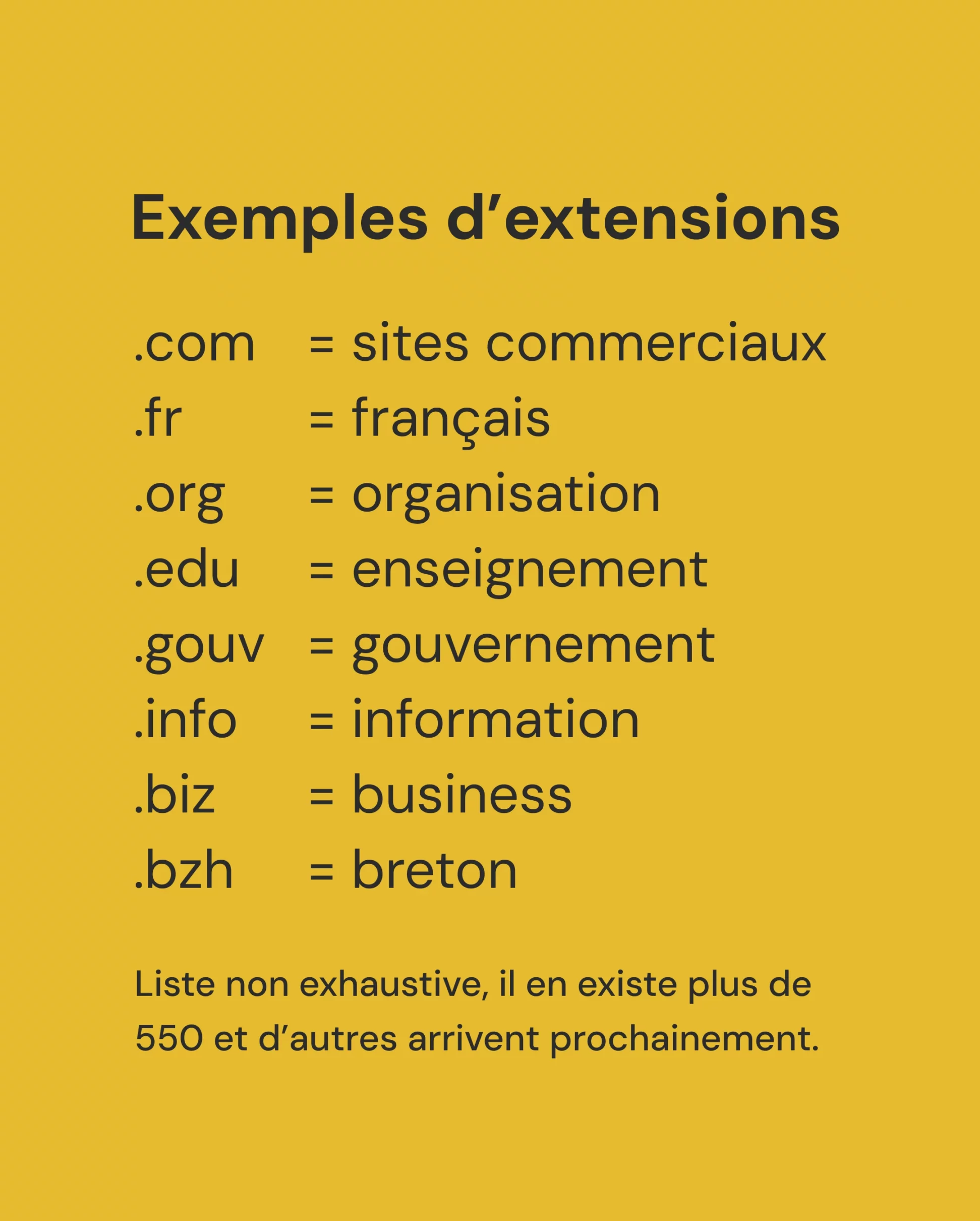 L’extension indique la catégorie du site web.